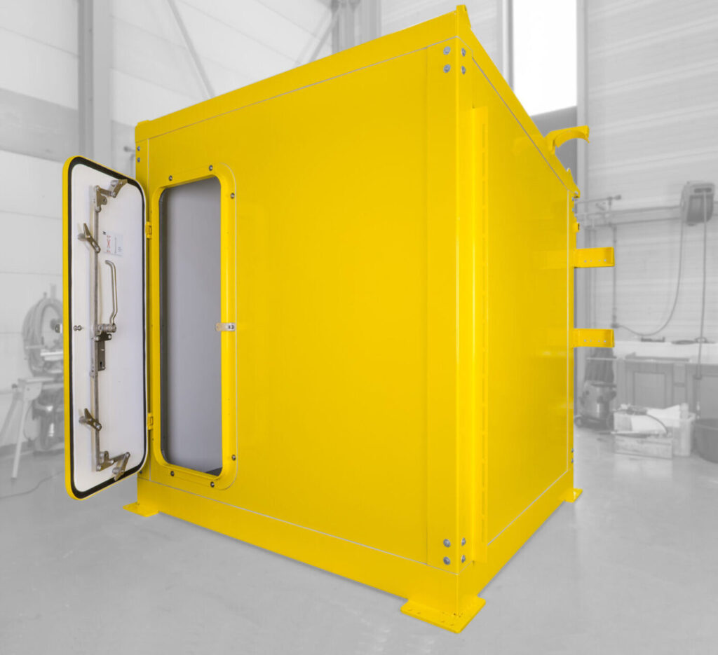 Het complete bordes wordt op een later moment op een meetpaal op zee geplaatst. Met de meetpaal worden met behulp van sensoren onder andere de watertemperatuur en geleidenheid gemeten. In de 10ft container staan de elektra voorzieningen opgesteld. Door deze in een container te plaatsen worden deze beschermd tegen slechte weersomstandigheden.